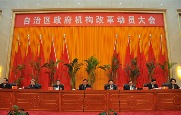 2009年1月20日上午,自治区党委、政府召开自治区政府机构改革动员大会,动员部署自治区政府机构改革工作,启动市县政府机构改革工作。
