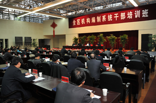 为切实做好全区政府机构改革的组织实施工作,进一步落实自治区人民政府颁布的《宁夏回族自治区事业单位机构编制管理规定》和自治区党委、人民政府印发的《关于事业编制实行分类管理的意见》,1月21日,自治区编办在银川举办了全区机构编制系统干部培训班。对各级政府机构改革的组织实施及“三定”工作进行了辅导;学习了《规定》和《意见》的相关内容;学习了事业单位改革、编制分类管理和加强机构编制监督检查的相关政策。通过学习培训,全区机构编制系统干部和自治区各部门组织(人事)处长进一步统一了思想认识、理清了工作思路、明确了任务要求,增强了做好新形势下机构编制工作的责任感和使命感。