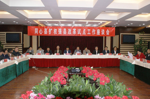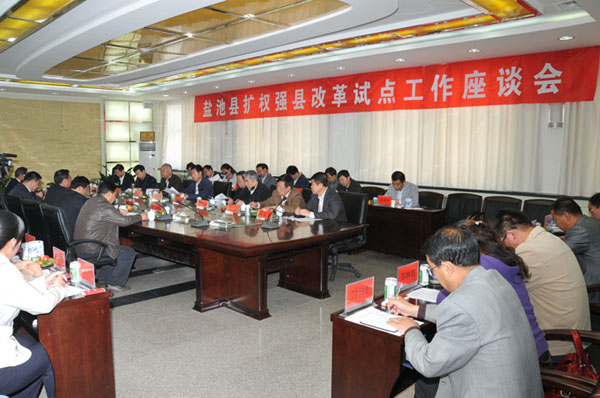 为进一步推进扩权强县改革试点工作,帮助试点县进一步理清思路,充分把握这一难得的战略机遇,推进县域经济又好又快发展,确保试点各项目标的实现,近日,宁夏自治区编办分别组织召开了同心县、盐池县扩权强县改革试点工作座谈会,邀请自治区发改委、财政厅、经信委、农牧厅、法制办等部门的领导和部分自治区政府参事、专家学者以及吴忠市有关领导进行座谈。与会人员紧紧围绕扩权强县背景下如何加快试点县经济社会发展的主题,为试点县问诊把脉,出谋划策,为进一步做好改革试点工作提出了许多宝贵的意见和建议,座谈时自治区编办姚占河主任就进一步做好改革试点工作提出了具体要求。