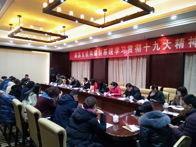 为认真学习贯彻党的十九大精神,准确把握中央关于深化机构和行政体制改革目标要求,加强市县(区)机构编制系统干部交流学习,12月6日至8日,固原市举办全市机构编制系统学习贯彻十九大精神培训班,固原市、县(区)编办全体干部参加学习培训。培训班采取专题辅导、座谈研讨、交流发言等形式进行,邀请固原市委党校陈燕教授做了专题辅导;分组就十九大报告对深化机构和行政体制改革提出的新要求新部署,并结合当前工作进行了研讨发言。