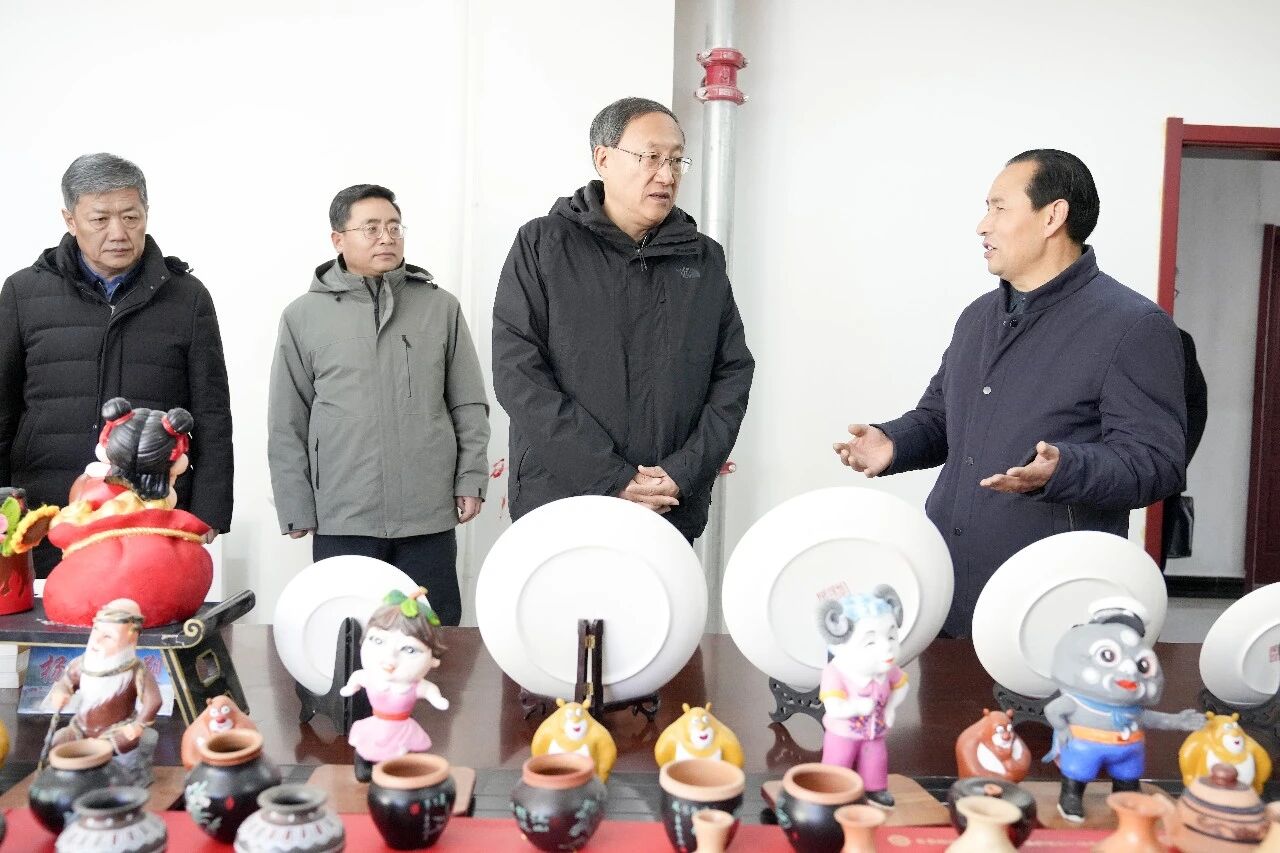 李邑飞在隆德县杨氏彩塑展示馆,调研非遗文化保护传承工作。